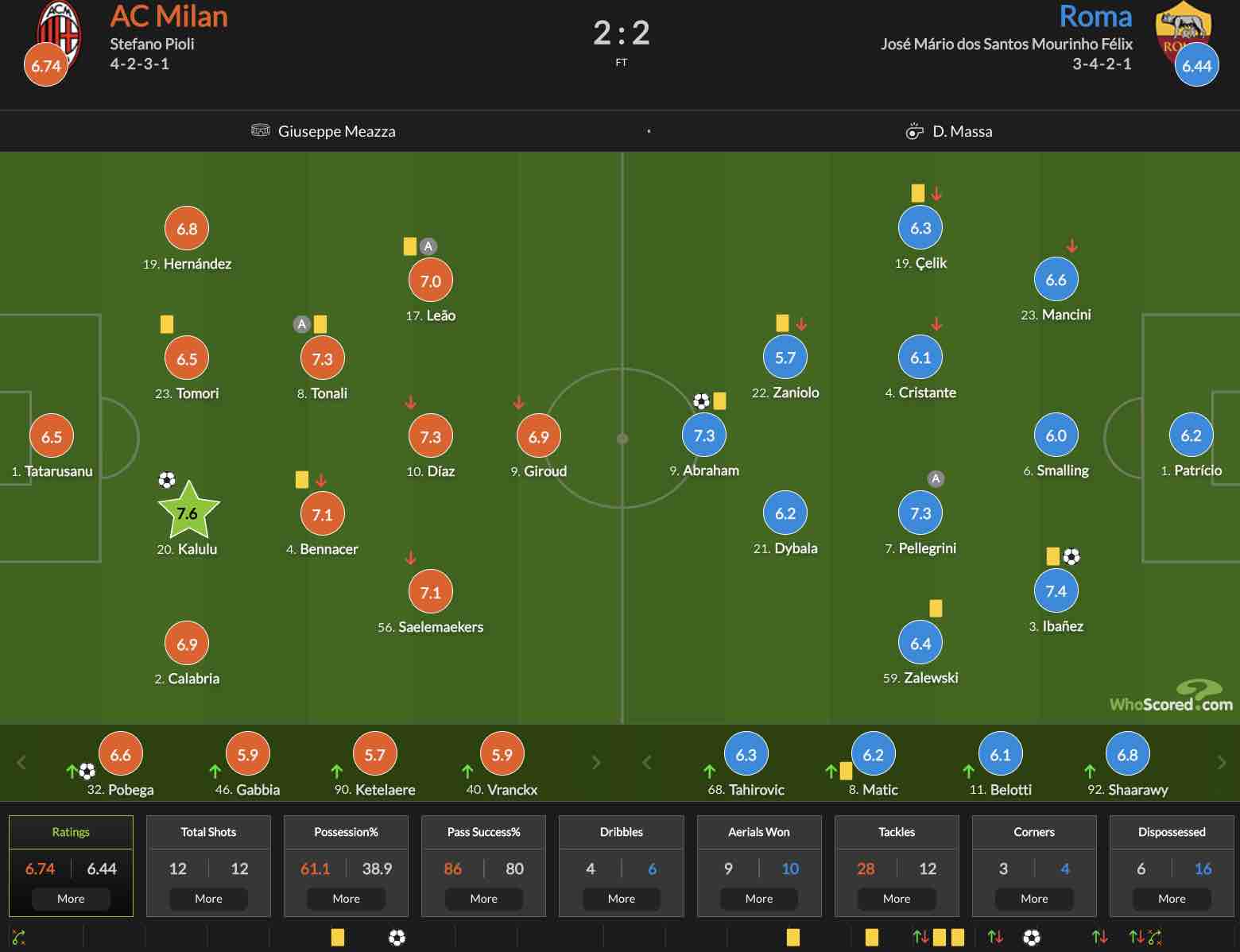 "მილანი" 2:2 "რომა" | ფეხბურთელთა შეფასებები