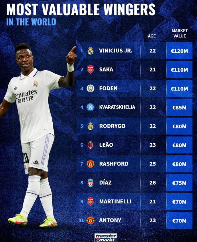 რომელ ადგილზე არიან კვარა და ლეაუ ყველაზე ძვირადღირებულ ვინგერებს შორის